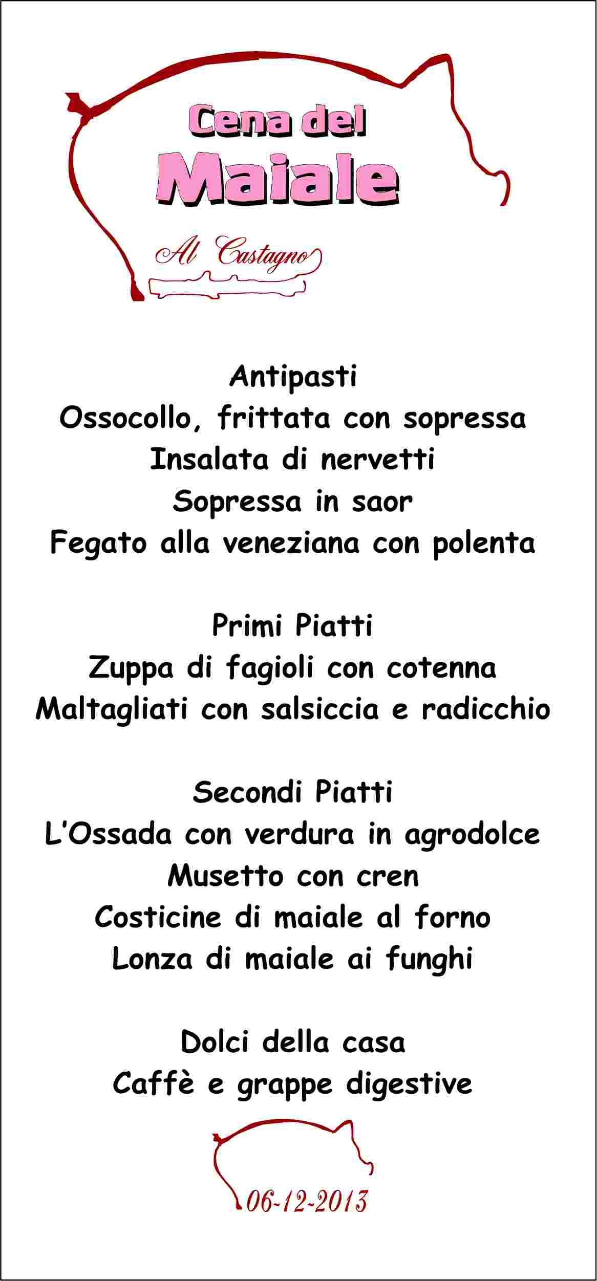 Il menù della serata vedrà come protagonista Il Radicchio, un susseguirsi di portate realizzate con queste straordinarie verdure abbinate con prodotti tipici della nostra azienda, dalla Sopressa alla pasta fatta in casa,dal musetto all'oca...